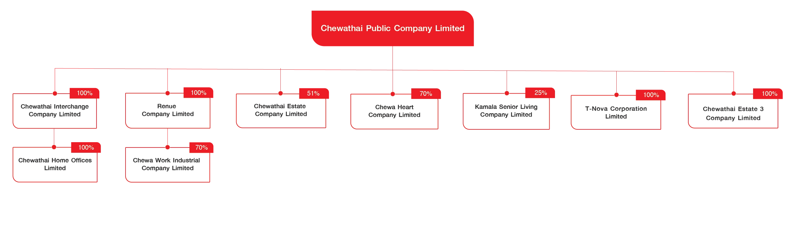 The company holds 9,998 shares in Chewathai Estate 2, with a par value of THB 100 per share, representing 100% of Chewathai Estate 2’s registered capital.