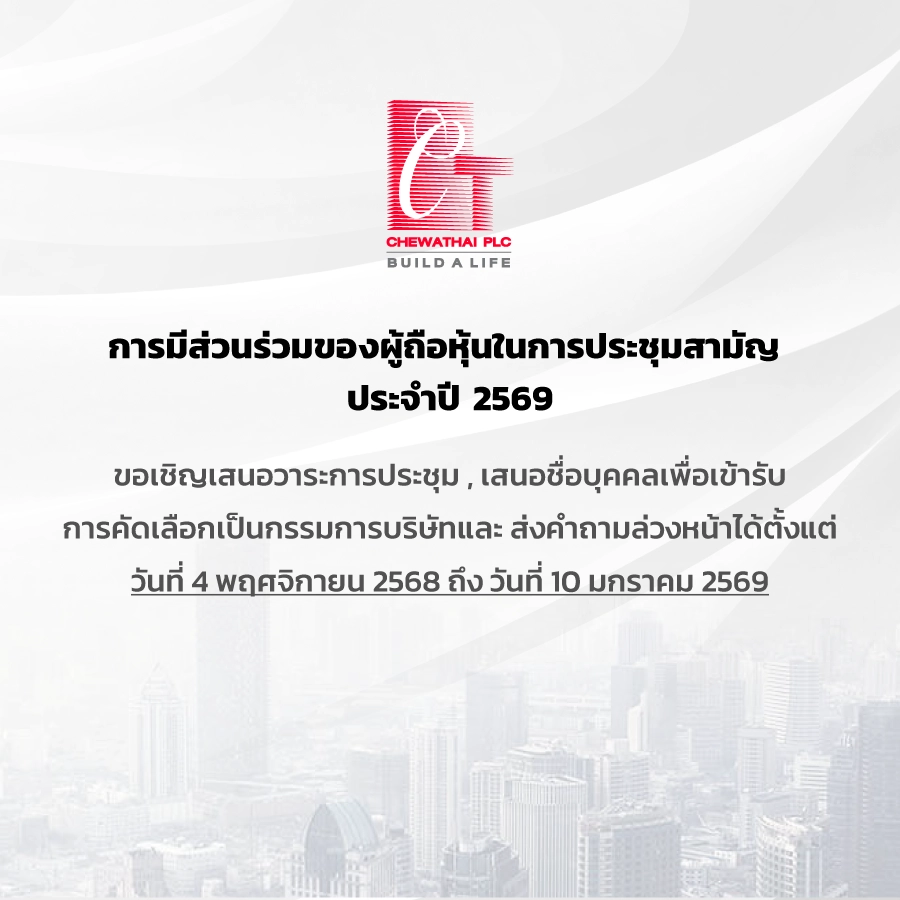 - อีเมล: ir@chewathai.com